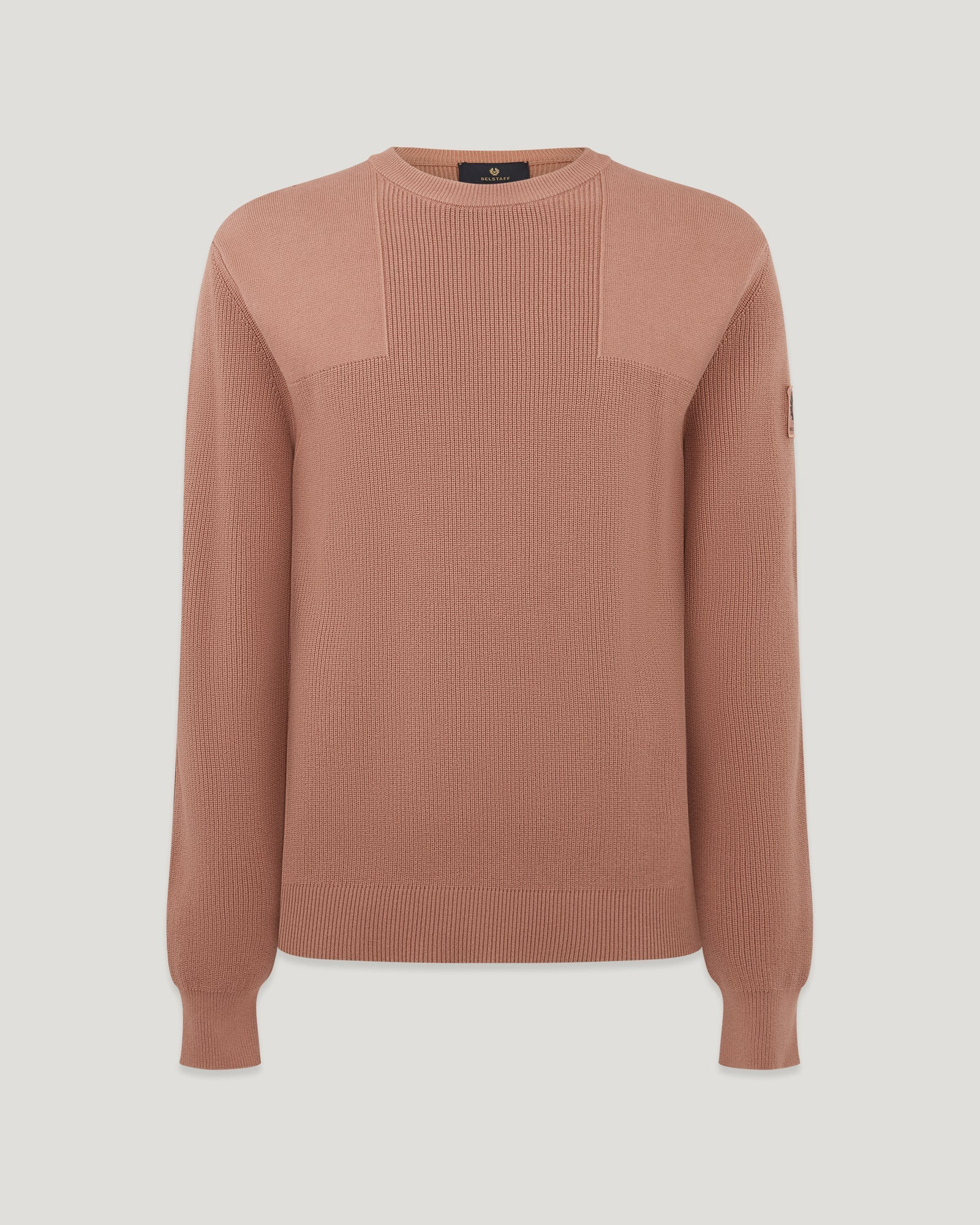 The Cedar Wood Commander crew-neck jumper is an essential piece for your wardrobe. This military-inspired piece is made from 12-gauge compact organic cotton for a medium-weight finish with a good balance of warmth, breathability, and durability – perfect for year-round layering. DETAILS - 12 gauge compact mercerised organic cotton - Military inspired shoulder and elbow panelling - Rib stitch - Embroidered edge tonal Belstaff phoenix patch on left sleeve - Global Organic Textile Standard - 100% Compact organic cotton - Product ref: 105871CDRWD SIZE AND FIT - Cut for a regular fit - Model wears a size M - Model measures: Height: 6'1", Chest: 39”, Waist: 30"