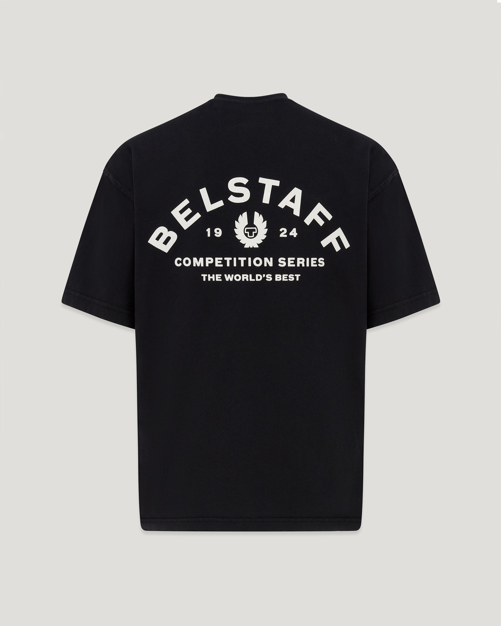 Our Competition series features the original '90s Belstaff logo from customised archival competition race suits. The black Competition t-shirt is expertly crafted from heavy garment-dyed jersey for a soft, comfortable feel, with a pre-washed, oversized fit, and a unique, vintage aesthetic. DETAILS - Heavy garment dye jersey - Short sleeve crew neck t-shirt - Ribbed collar - Puff print with enlarged back print branding - Main material: 100% cotton - Product ref: 1f07b0c1-7a51-4ab5-9225-845acc40b20e SIZE AND FIT - Cut for an oversized fit - Model wears a size L - Model measures: Height: 6'1.5", Chest: 41", Waist: 32"