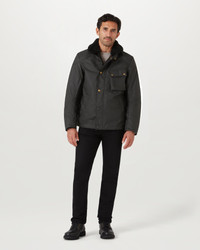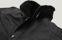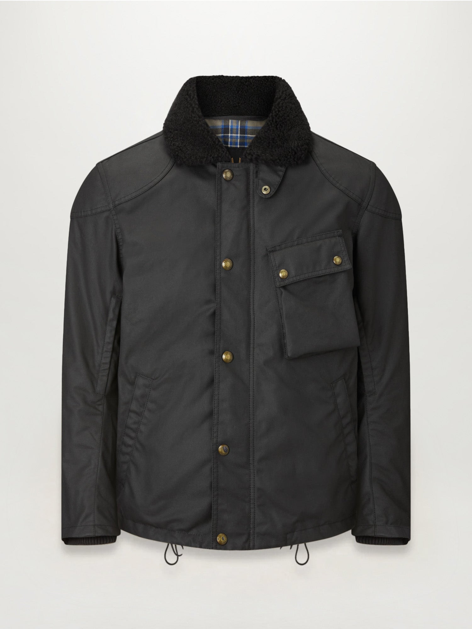 Styled on a US Navy jacket from our archive, the Convoy combines a real shearling collar with British Millerain 8oz, technical waxed cotton in Black and a light layer of insulation for comfort and performance. A drawstring hem keeps out the wind while mesh zip ventilation openings and an interlayered breathable, waterproof membrane aid cooling. Kevlar lined elbow and shoulder patches paired with D3O armour add protection, and a classic Belstaff ‘map’ chest pocket, checked cotton lining and sleeve logo complete the look. DETAILS - 8oz. British Millerain technical waxed cotton - Inspired by a US Navy deck jacket from our archives - Shearling collar - Lightly insulated - Drawstring hem to prevent wind ingress when riding - Zipped vent at front bicep - Breathable, waterproof membrane - Zipped mesh back vent - Signature map chest pocket - Zipped side pockets - Adjustable buckle waist - Internal zip pocket - Knitted internal storm cuffs - Signature check lining - Kevlar lined elbow and shoulder patches - 65% polyester, 35% cotton - Certification: AA - Protection: D3O Tri-ventilation level 1 (Elbow/Shoulder) - Product ref: 104898Black SIZE AND FIT - Cut for a regular fit - Model wears a size M - Model measures: Height: 6'1", Chest: 40", Waist: 32â
