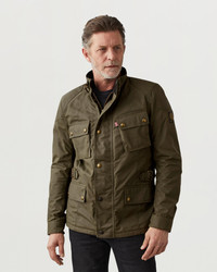 Hip-length with shaped panel seaming, the Crosby in Forest Green is light but tough thanks to British Millerain 8oz, technical waxed cotton that keeps the elements at bay. Comfort’s assured thanks to waist adjustment buckles and an interlayered breathable, waterproof membrane, and safety features include D3O shoulder and elbow armour. Twin needle stitching and oil resistant corduroy neck and cuff facings make it hard-wearing, and the archival check lining and engraved antique brass fastenings add to the classic styling. DETAILS - 8oz. British Millerain technical waxed cotton - Compatible with snap-in climate vest - Breathable, waterproof membrane - Shaped panel seaming for a slim fit - Hip length - Protective reinforcement beneath elbow and shoulder patches - Oil-resistant corduroy collar and cuffs - Zipped internal pocket - Knurled buckle and strap fastening throat latch - Zipped back protection pocket - Twin needle topstitching for strength - Adjustable buckled waist - Engraved antique brass fastenings - Adjustable cuffs with gusset - Belstaff logo patch on left arm - 65% polyester, 35% cotton - Certification: AA - Protection: D3O Tri-ventilation level 1 (Elbow/Shoulder) - Product ref: 104968FRSGR SIZE AND FIT - Cut for a regular fit - Model wears a size L - Model measures: Height: 6'1", Chest: 40", Waist: 31"