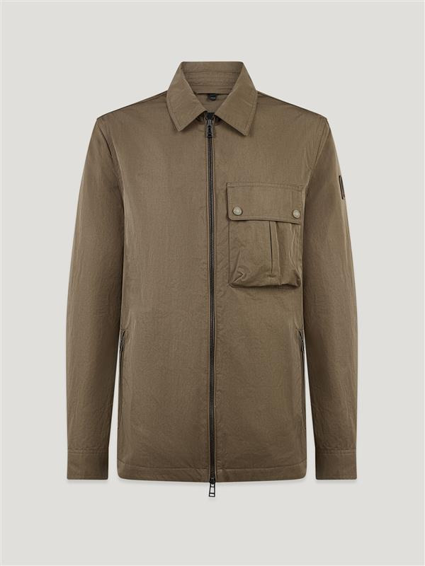 The Drome overshirt in Major Brown is a versatile piece with pleated Belstaff utility pockets. It's made from cotton nylon gabardine – combining cotton yarn with strong nylon filaments to achieve softness and smartness. The water-repellent finish is perfect for inclement weather. DETAILS - Woven tonal sleeve patch - Centre front zip opening - Adjustable press stud cuff fastening - One bellowed, pleated chest pocket - Two zip entry hip pockets - Water repellent - 65% Cotton, 35% Polyamide (Recycled) - Product ref: 105450MJRBN SIZE AND FIT - Cut for a regular fit