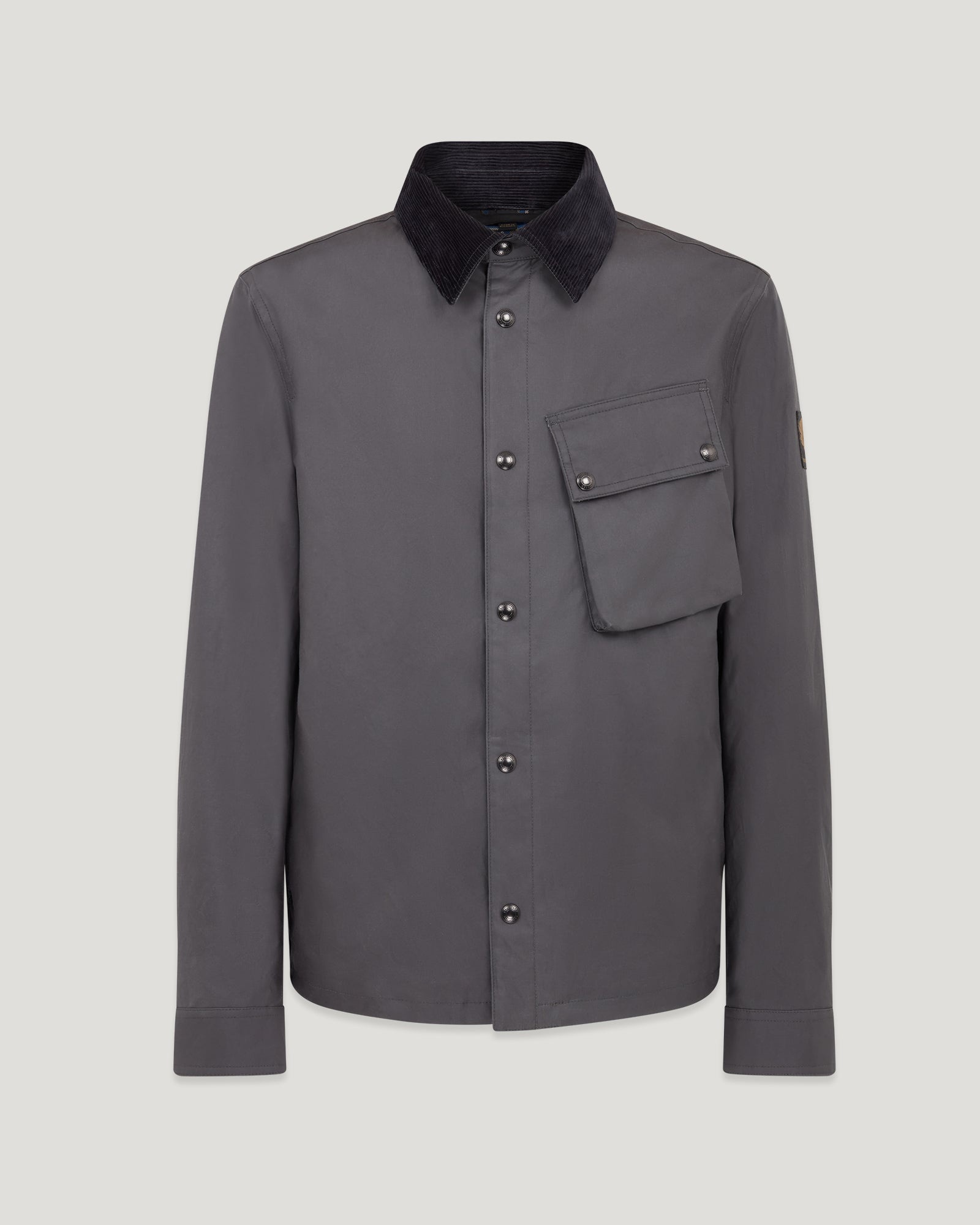 Meet the Ground jacket in Tornado Grey with a stylish corduroy collar. It offers instant warmth and protection with 6oz. British Millerain waxed cotton, which is water and wind repellent. Inside features a cotton twill lining woven in the signature Belstaff checked pattern, our angled moto inspired chest pocket and snap adjustable cuffs with antique brass hardware. This men’s jacket is as at home on country walks as it is on the work commute over a suit. DETAILS - 6 oz. waxed cotton - Cotton twill lining woven in the signature Belstaff checked pattern - Angled moto inspired chest pocket with two snap closure - Gunmetal hardware - Corduroy collar - Flat woven sleeve patch - Centre front zip closure with snap closure placket - Water repellent - Wind repellent - Shell: 100% Cotton, Lining: 100% Cotton - Sleeve lining: 55% Polyester, 45% Viscose / Rayon - Product ref: 105804TNDGY SIZE AND FIT - Cut for a regular fit