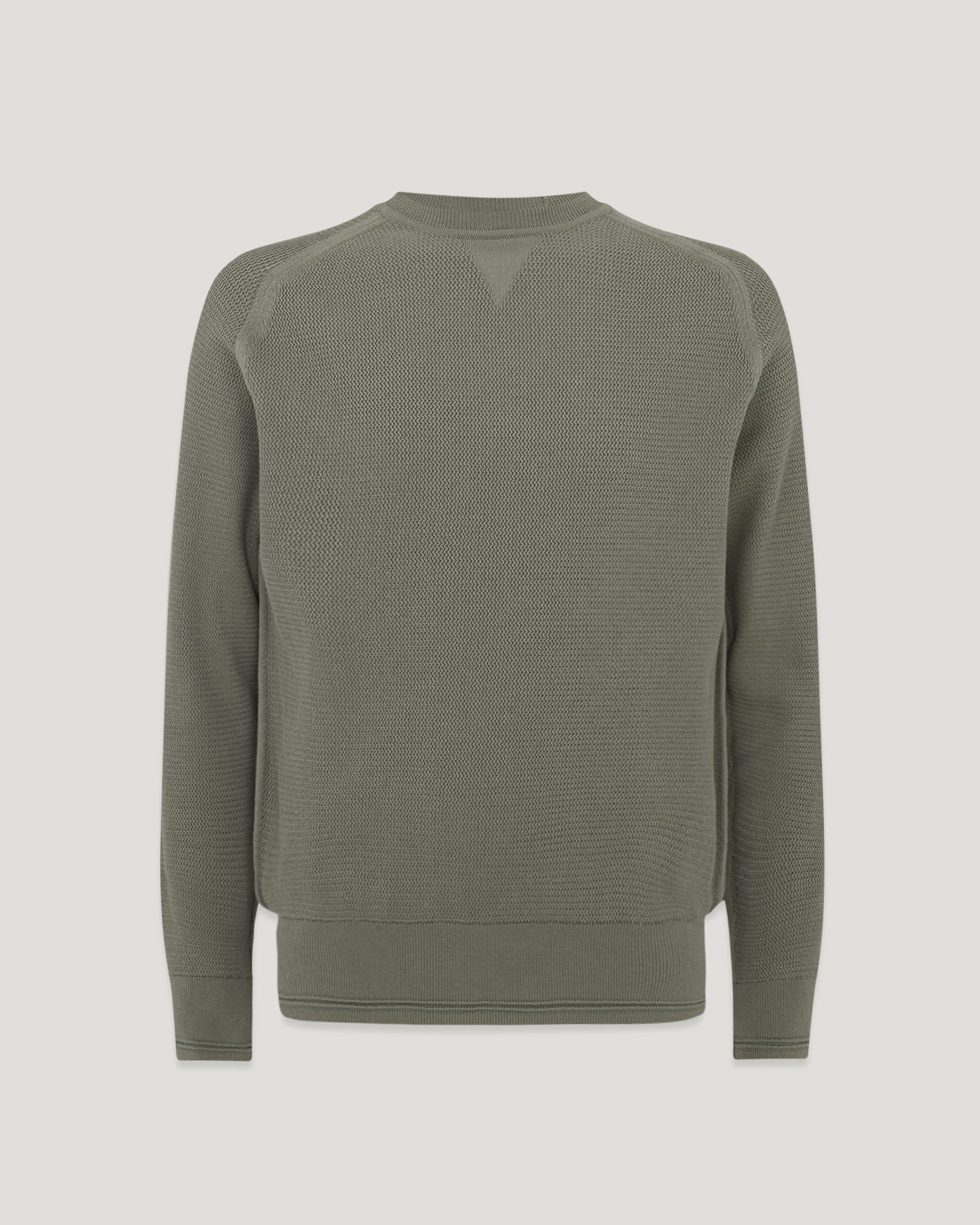 The Guide crew neck jumper in Sage Green is a lightweight sweater design crafted from organic cotton. This wardrobe essential piece features a rack stitch and saddle sleeve construction for a military-inspired finish. DETAILS - 12 gauge organic cotton - Textured racking stitch - Contrast stitch detailing - Tonal Belstaff phoenix patch on left sleeve - Global Organic Textile Standard - 100% Cotton - Product ref: 105422SAGGR SIZE AND FIT - Cut for a regular fit