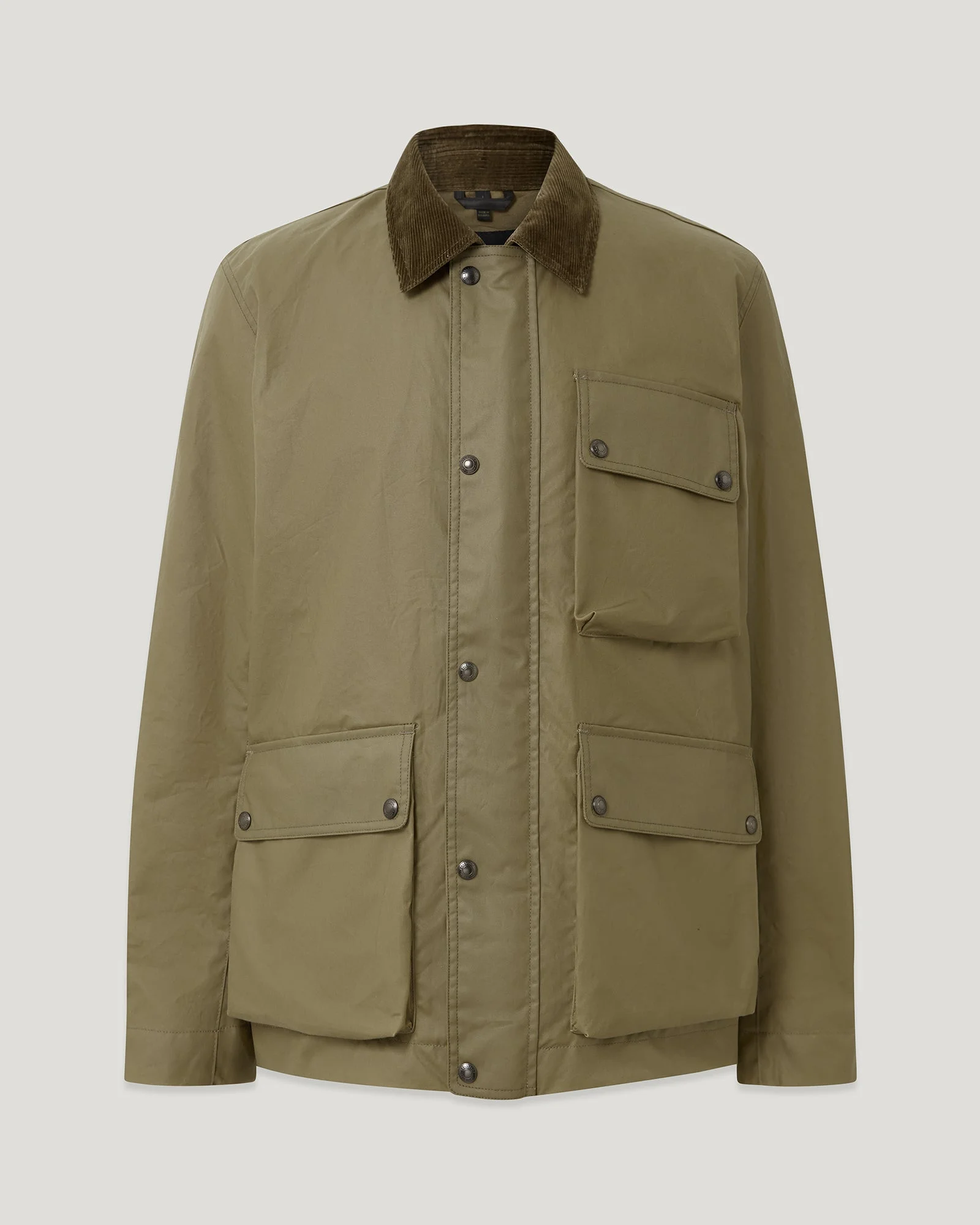 Meet the Incline jacket in Fatigue Green. This men’s field design jacket is expertly crafted from 6oz. British Millerian waxed cotton, which is water and wind-resistant, has long-lasting durability and a finish that becomes more characterful with age. It features a cotton twill lining woven in the signature Belstaff checked pattern. This men’s jacket is as at home on country walks as on the work commute over a suit. DETAILS - 6 oz. waxed cotton - Shadow check lining - New waxed cotton shape - Two press stud bellows flap hip pockets with side entry - Snap throat latch for wind protection - Corduroy collar - Woven patch on sleeve - Centre front zip closure with snap closure placket - One press stud flap chest pocket - Water and wind repellent - Shell: 100% Cotton, Body lining: 100% Cotton - Secondary lining: 55% Polyester, 45% Viscose / Rayon - Made in Bulgaria - Dyed and finished in the UK - Product ref: 105810DRKFG SIZE AND FIT - Cut for a regular fit