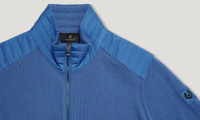 The Kelby zip cardigan in Marine Blue is crafted from lightweight merino wool. This luxurious fabric offers warmth, yet is lightweight and breathable. It wicks away moisture while regulating body temperature, making it perfect for all seasons. DETAILS - Merino wool with polyester detailing - Channel quilted shoulder reinforcement detailing - Ribbed cuffs and hem - Belstaff phoenix patch on left sleeve - Centre front full zip closure - Non-mulesed wool for animal welfare - Slim fit - Body: 100% Extrafine merino wool, Woven: 100% Recycled polyester, Filling: 100% Recycled polyester - Made in China - Dyed in China - Product ref: 105598MRNBL SIZE AND FIT - Cut for a slim fit - Model measures : Height: 6'1", Chest: 40", Waist: 31" - Model wears a size M