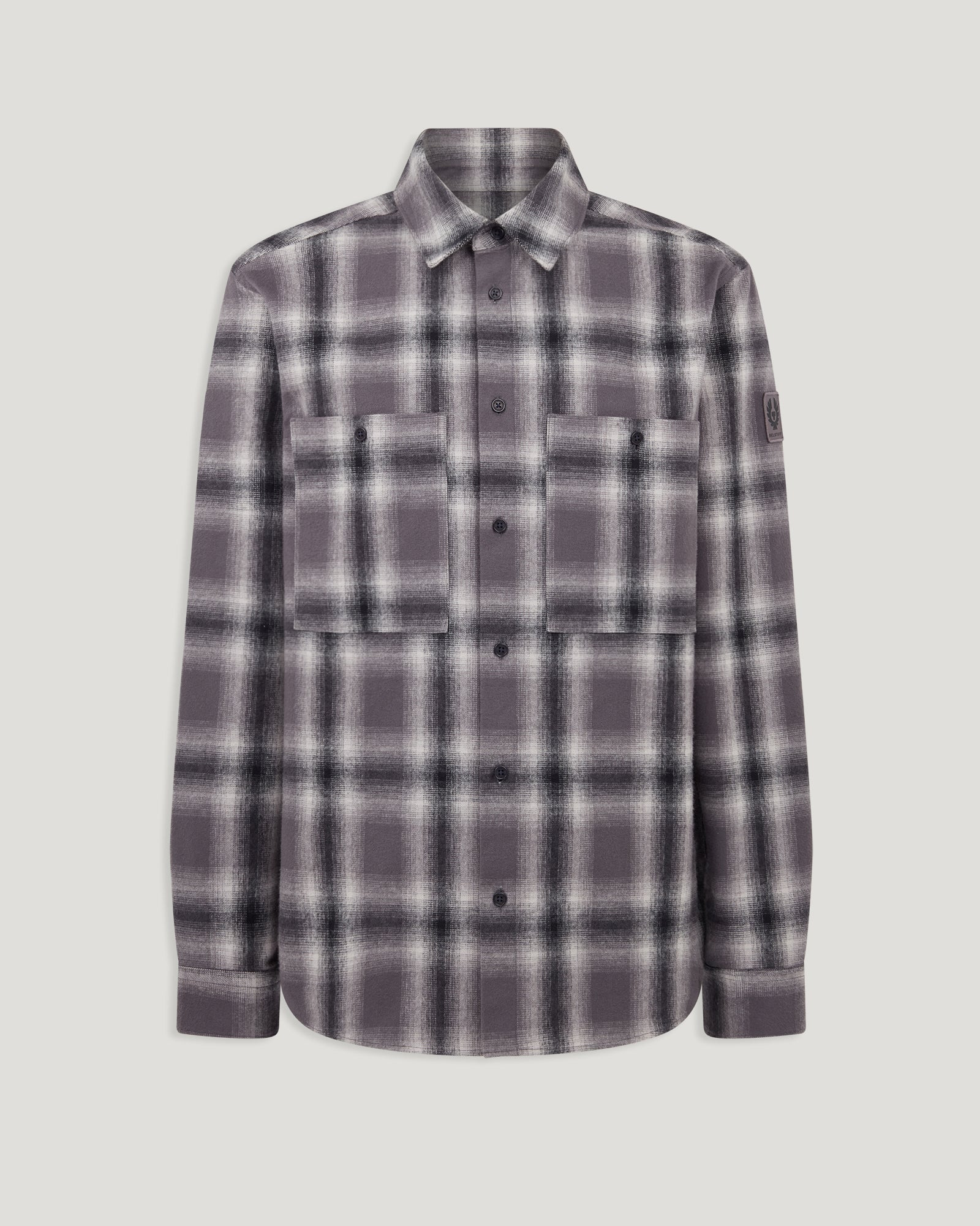 Our Outpost flannel shirt is crafted from heavyweight Tornado Grey / Cement Grey cotton flannel. This soft, comfortable yarn is made in Portugal and features a dye plaid check. A warm and casual shirt for new-season styling. DETAILS - Heavyweight cotton flannel with yarn dye plaid check - Made in Portugal with Portuguese fabric - Two large button down closure flap patch pockets - Adjustable button cuff - Point collar - Embroidered tonal Belstaff phoenix patch on left sleeve - Centre front button fastening - BCI Cotton - 100% Cotton - Product ref: 105847BLTGCG SIZE AND FIT - Cut for a relaxed fit - Model wears a size M - Model Measures: Height: 6'0", Chest: 38", Waist: 32"