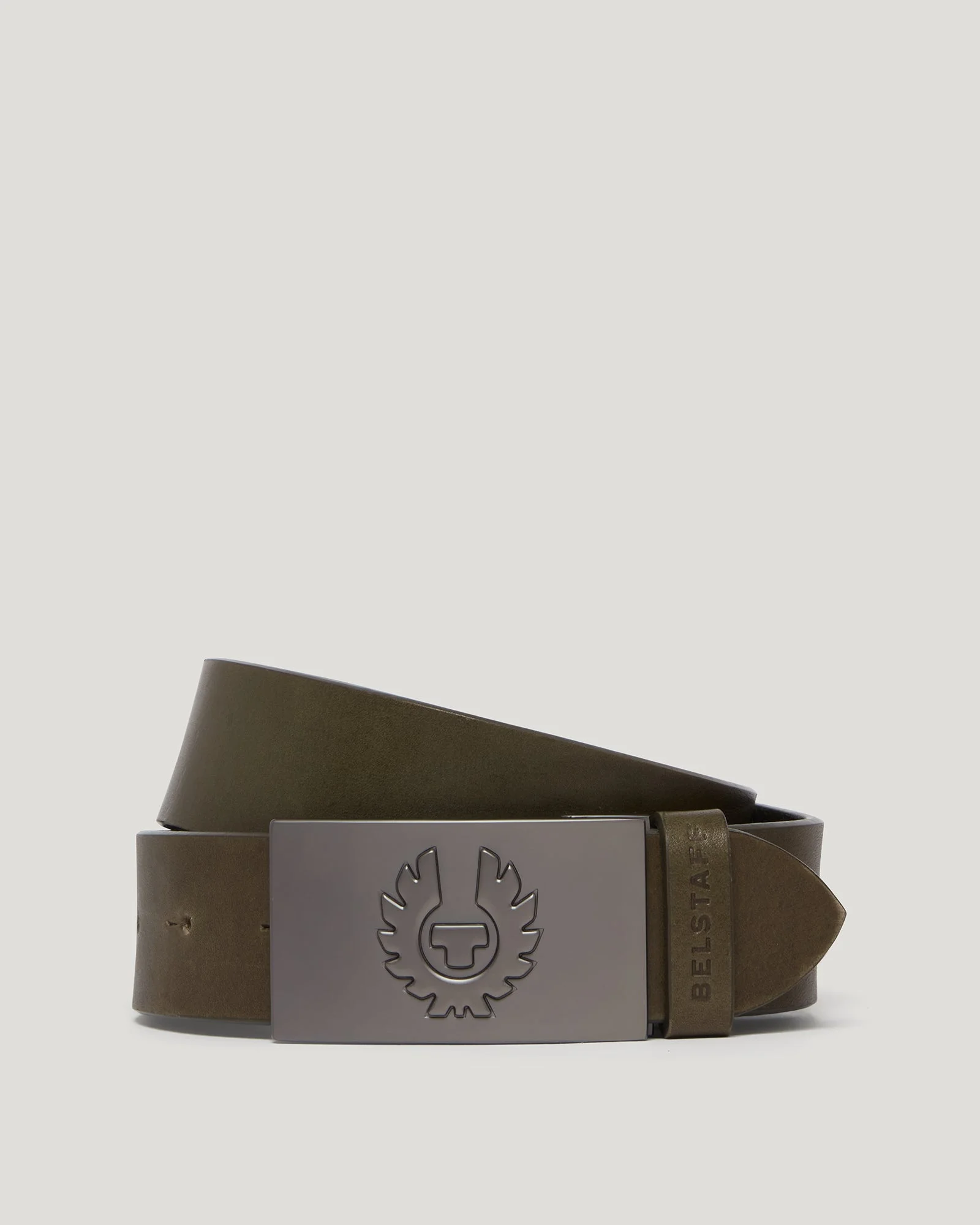 The Phoenix Buckle Belt in Fatigue Green is a confident style with a prominent buckle complete with Belstaff Phoenix logo. Crafted from calf leather for strength and durability. DETAILS - Calf leather - Classic square ring belt - Smooth leather - Belstaff phoenix logo - 100% cow leather - Made in Italy - Product ref: GREEN-106542FTGGN