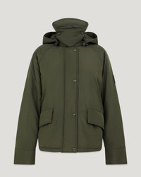 The Port jacket in Faded Olive combines functionality with style. Crafted from 100% recycled polyester with a water-repellent finish, this lightly padded jacket offers warmth, while the detachable hood adds flexible styling options. DETAILS - 100% recycled polyester with water-repellent finish - Detachable hood - Tonal snaps - Silicone Belstaff phoenix branding on left sleeve - Centre front zip opening, press stud placket fastening, collar latch fastening - Zip off removable hood - Two flap entry hip pocket - Water repellent, primaloft-insulated - Recycled polyester - Body: 100% Polyester Filling: 100% Polyester - Product ref: 105472FDOLI SIZE AND FIT - Cut for an oversized fit