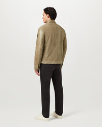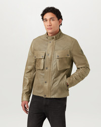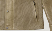 Our Racemaster Air jacket in Dark Sand is a modern interpretation of an iconic style in summer leather. The signature fabric is a full-grain leather that has been waxed by hand to create a rich, polished finish with a lived-in, vintage look, with perforated detailing that makes it exceptionally breathable. This clever design is water-resistant, highly durable and will age beautifully. DETAILS - Centre front zip fastening, snap button placket - Snap tab collar - Cord lined cuff and neck - Slanted map pocket - Belstaff's leather products support responsible manufacturing via the Leather Working Group - 100% cow leather - Made in Italy - Product ref: 106124DKSND SIZE AND FIT - Cut for a regular fit - Model wears a size US 40 - Model measures: Height: 6.0", Chest: 42.5", Waist: 34"