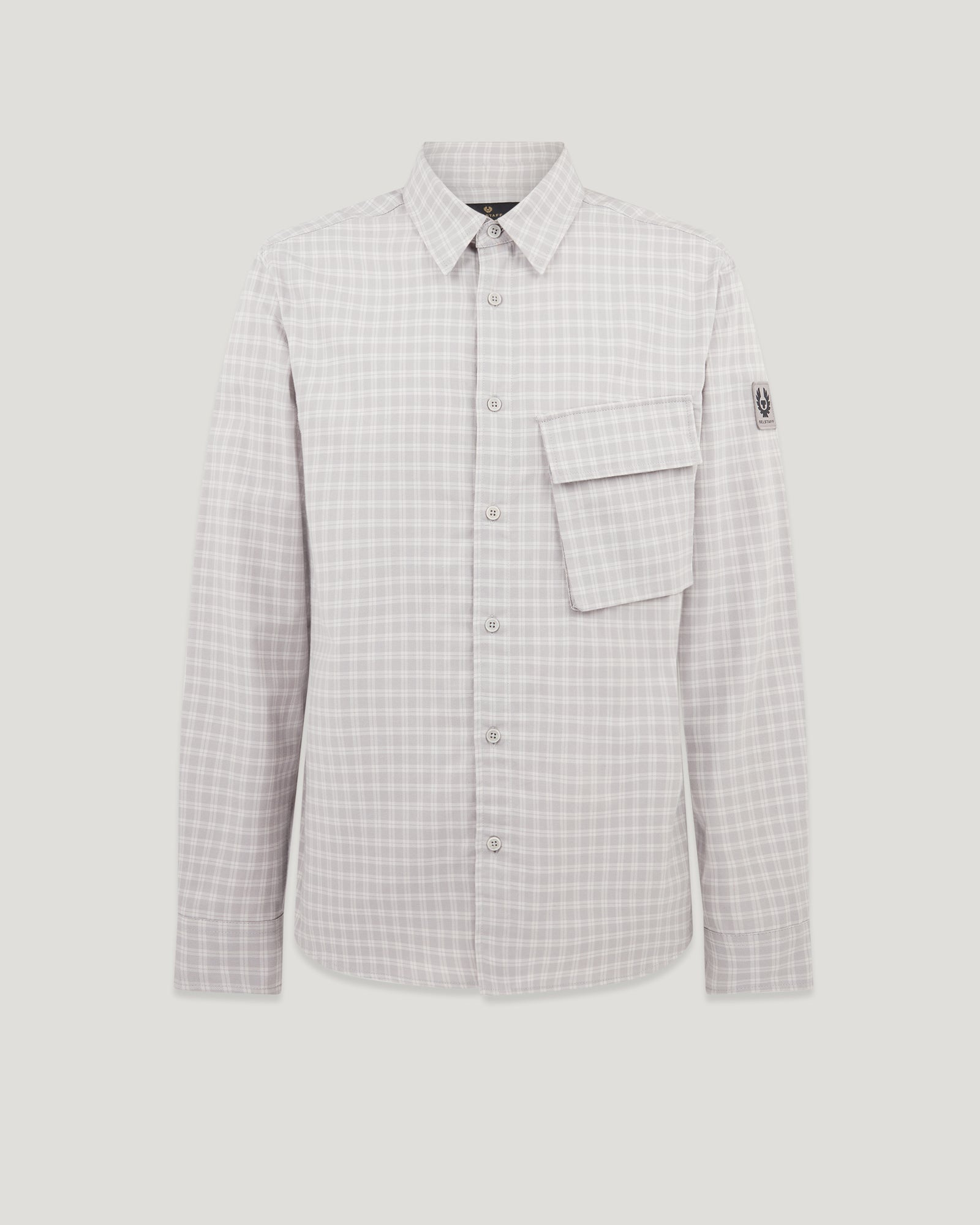 A go-to smart casual style in Grey / Silver Birch, our Scale Shirt is crafted from a structured brushed cotton and garment-dyed for a rich, saturated colour. DETAILS - Made in Portugal with Portuguese material - Yarn dye brushed cotton check - Point collar - Signature tilted bellows chest pocket with concealed button flap - Adjustable button cuff - Embroidered tonal Belstaff phoenix patch on left sleeve - Centre front button front closure - BCI Cotton - 100% Cotton - Product ref: 105844CGSRB SIZE AND FIT - Cut for a regular fit