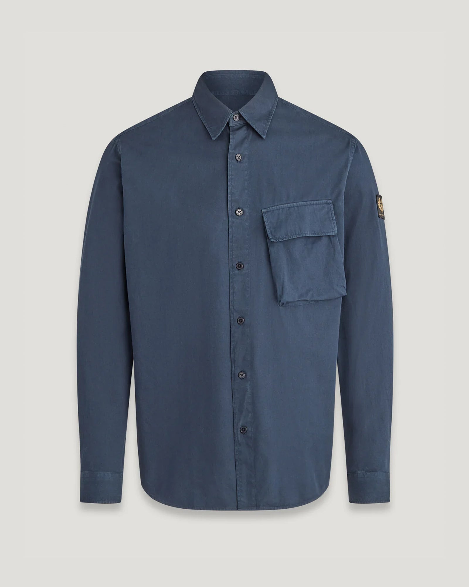 A go-to smart casual style in Dark Ink . Our Scale Shirt is crafted from a structured cotton twill and garment-dyed for a rich, saturated colour. By choosing our cotton products, you’re supporting Belstaff`s investment in Better Cotton’s mission. This product is sourced via a system of mass balance and therefore may not contain Better Cotton. Learn more at bettercotton.org/learnmore DETAILS - Garment-dyed cotton twill - Long sleeve shirt - Point collar - Adjustable buttoned cuff - Centre front button fastening - Signature tilted flap pocket - Belstaff Phoenix patch on sleeve - 100% Cotton - Product ref: 104537DKINK SIZE AND FIT - Cut for a regular fit - Model wears a size M - Model measures: Height: 6'2", Chest: 37", Waist: 29"