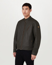 Based on our iconic Cafe Racer, the Sideline jacket in faded olive offers instant warmth and protection with 6oz. British Millerian waxed cotton, which is water – and wind-repellent. Inside, it features a cotton twill lining woven in the signature Belstaff checked pattern, our woven Phoenix patch on the sleeve, and snap adjustable cuffs with antique brass hardware. DETAILS - 6 oz. waxed cotton - Water and wind repellent - Cotton twill lining woven in the signature Belstaff checked pattern - Based on iconic V Racer Jacket - Snap adjustable cuffs - Antique brass hardware - Woven phoenix patch on sleeve - Centre front zip fastening with snap closure at neck - One zip pocket - Two lower pockets with side entry - Shell: 100% Cotton, Lining: 100% Cotton - Sleeve lining: 55% Polyester, 45% Viscose / Rayon - Product ref: 105803FDOLI SIZE AND FIT - Cut for a slim fit