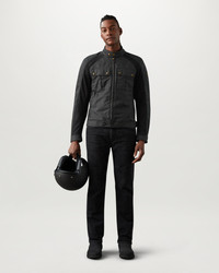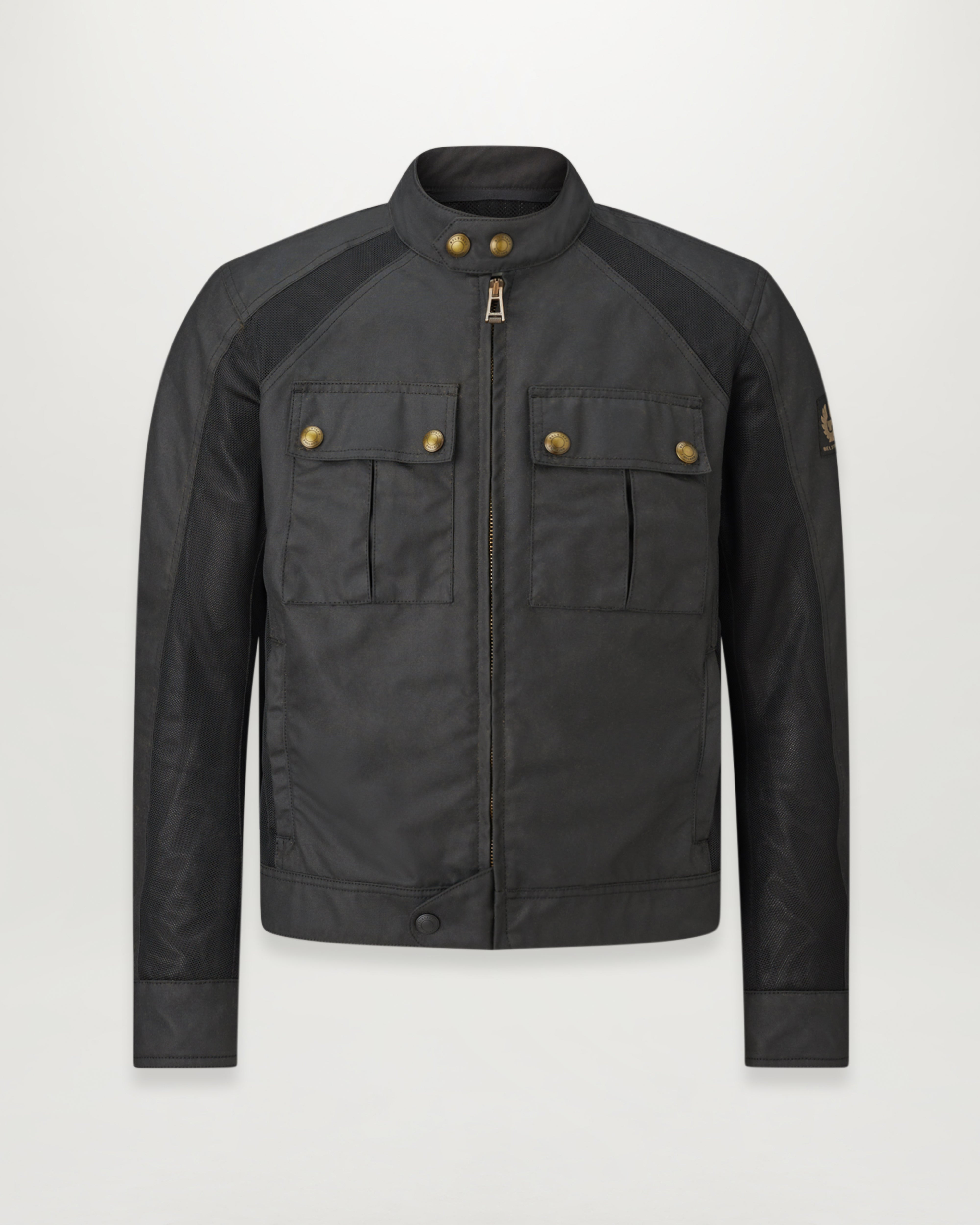 With its mesh panelling that allows maximum airflow, the Temple is perfect for warmer weather – although British Millerain 8oz, technical waxed cotton in Black will still keep out the rain. Cut in classic Belstaff style with a check lining finished to prevent wax migration, D3O shoulder and elbow armour offer extra protection, and there is a kidney shaped waistband for comfort and twin needle topstitching for strength. DETAILS - 8oz. British Millerain technical waxed cotton - Signature check lining - Quintessential Belstaff style for riding in warmer climates - Antique brass hardware - Silicone coated snap fastenings to prevent tank scratching - Mesh panelling for ventilation - Snap throat closure - Twin needle topstitching for strength - Zipped back protector pocket - Adjustable waist and back to prevent wind ingress - Reflective cuff and hem piping - Zipped side pockets - Kidney shaped waistband - Internal zipped pocket - 65% polyester 35% cotton - Certification: A - Protection: D3O Tri-ventilation level 1 (Elbow/Shoulder) - Product ref: 104975Black SIZE AND FIT - Cut for a regular fit - Model wears a size M - Model measures: Height: 6'1", Chest: 40", Waist: 32â
