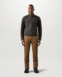 With its mesh panelling that allows maximum airflow, the Temple is perfect for warmer weather – although British Millerain 8oz, technical waxed cotton in Mahogany will still keep out the rain. Cut in classic Belstaff style with a check lining finished to prevent wax migration, D3O shoulder and elbow armour offer extra protection, and there is a kidney shaped waistband for comfort and twin needle topstitching for strength. DETAILS - 8oz. British Millerain technical waxed cotton - Signature check lining - Quintessential Belstaff style for riding in warmer climates - Antique brass hardware - Silicone coated snap fastenings to prevent tank scratching - Mesh panelling for ventilation - Snap throat closure - Twin needle topstitching for strength - Zipped back protector pocket - Adjustable waist and back to prevent wind ingress - Reflective cuff and hem piping - Zipped side pockets - Kidney shaped waistband - Internal zipped pocket - 65% polyester 35% cotton - Certification: A - Protection: D3O Tri-ventilation level 1 (Elbow/Shoulder) - Product ref: 104975MAHOG SIZE AND FIT - Cut for a regular fit - Model wears a size M - Model measures: Height: 6'1", Chest: 40", Waist: 32â