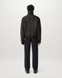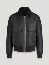 The Trace jacket in black is built to last a lifetime from English shearling and is waxed by hand for light water-repellency. It’s a classic aviator silhouette and features a convertible collar for extra warmth during colder seasons. DETAILS - Our iconic English shearling quality with a rugged, semi-oiled finish - Bomber jacket silhouette with convertible shearling collar - Leather taping detail - Ribbed collar and cuffs - Tonal leather Belstaff phoenix patch on left sleeve - Centre front zip closure - Zip fastening hip pockets - Belstaff`s leather products support responsible manufacturing via the Leather Working Group. - Body: 100% Lambskin, Trims: 100% Lamb Leather - Product ref: 105198BLACK SIZE AND FIT - Cut for a regular fit - Model wears a size M - Model measures: Height: 6'0", Chest: 40", Waist: 31"