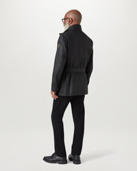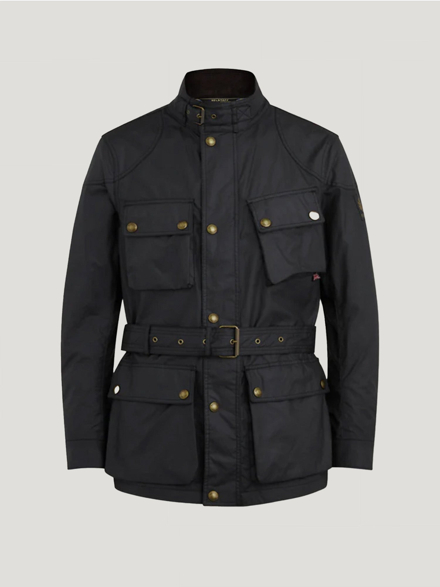 Our definitive jacket since 1948, the Trialmaster's roots are in the Scottish Six Days Trial, originally developed to keep riders dry in tough weather conditions. Built to last from our black 6 oz. waxed cotton, it features a legacy slanted map pocket and adjustable belt so you can perfect the fit. Re-wax to keep it water and wind-repellent. It snaps into the Icon Gilet (sold separately). DETAILS - 6 oz. waxed cotton, with a unique blend of micro and technical waxes - Water-repellent and wind-repellent - Cotton twill lining woven in the signature Belstaff checked pattern - Corduroy linings at the collar, cuffs and hem provide added comfort and resilience at high contact points - Belstaff phoenix patch on left sleeve - Centre front zip and snap placket - Buckle-adjusted collar - Four modern, storm proof bellows pockets with dual press stud closure - Signature tilted left chest pocket - By choosing our cotton products, youare supporting Belstaff`s investment in Better Cottonas mission. This product is sourced via a system of mass balance and therefore may not contain Better Cotton. Learn more at bettercotton.org/learnmore - Shell: 100% Cotton, Body Lining: 100% Cotton - Sleeve Lining: 55% Polyester, 45% Viscose/Rayon - Product ref: 105310BLACK SIZE AND FIT - Cut for a regular fit - Model wears a size US 40 - Model measures: Height: 6'3", Chest: 37", Waist: 32"