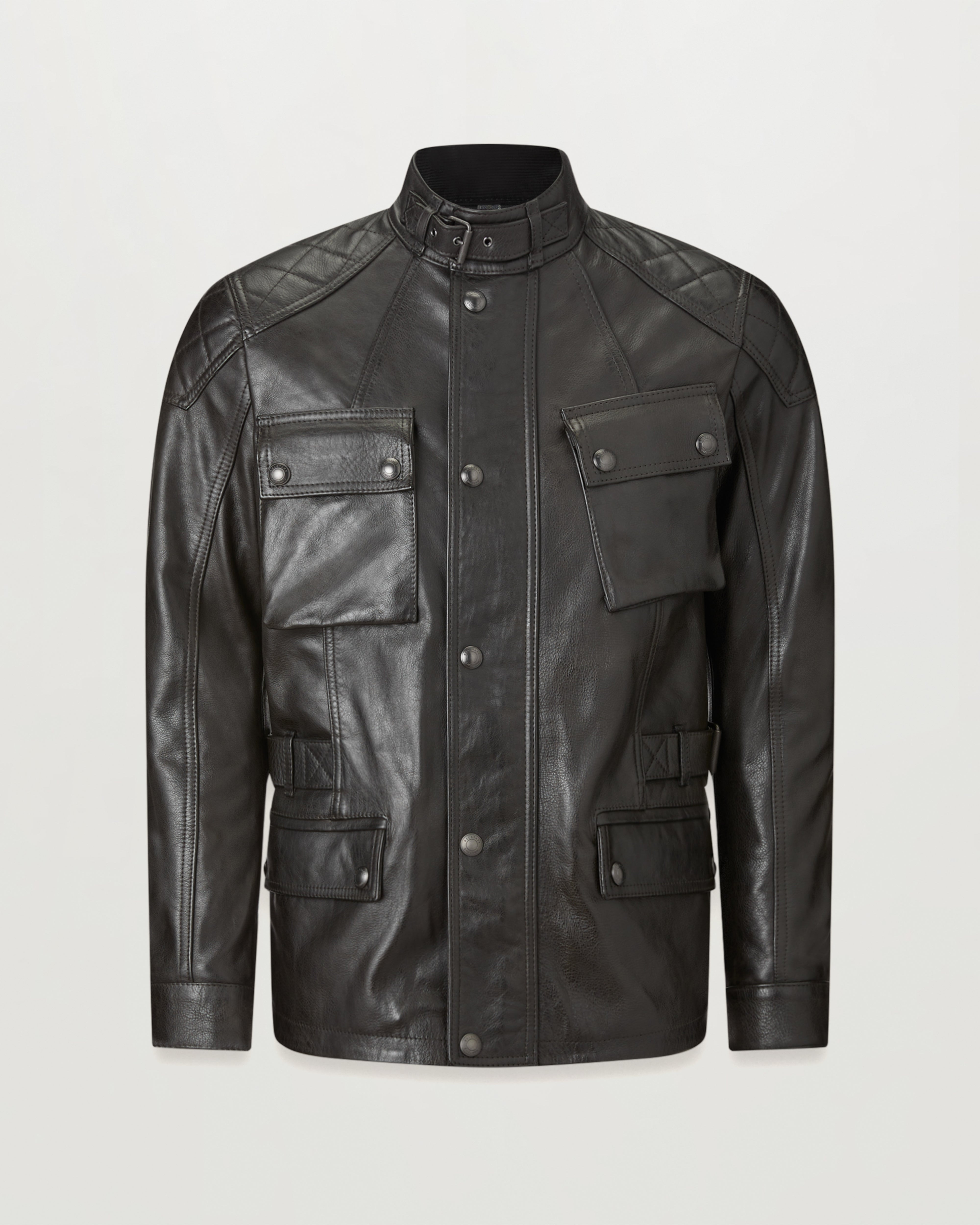 Featuring a patina unique to each jacket after an 18-hour hand-waxing process that produces the final colour, the Turner is crafted from 100 per cent cow leather. Hard-wearing oil resistant corduroy neck and cuff facings and reinforcement beneath quilted shoulder and elbow patches mean it is built to last while D3O shoulder and elbow armour offer protection. Finishing details include ergonomic seams, metal patch logo and a classic Belstaff checked woven cotton lining. DETAILS - Hand-waxed leather - Develops a unique patina over time - Protective reinforcement beneath elbow and shoulder patch - Signature check lining - Oil-resistant corduroy neck and cuffs - Adjustable, knurled throat latch fastening - Metal patch logo on left arm - Ergonomic seams - Quilted shoulder and elbow patches - Zipped internal pockets - Engraved stud and buckle fastenings - Adjustable buckled waist - Back protection pocket - Stud fastening cuffs - 100% cow leather - Certification: A - Protection: D3O Tri-ventilation level 1 (Elbow/Shoulder) - Product ref: 105379ATBLK SIZE AND FIT - Cut for a regular fit - Model wears a size L - Model measures Height: 6'1"- Chest: 40"- Waist: 31"