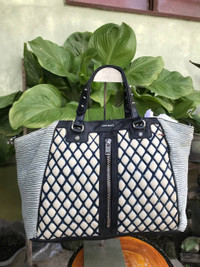 Diesel Tote Bag Denim Leather Chuck Zip Studs