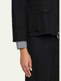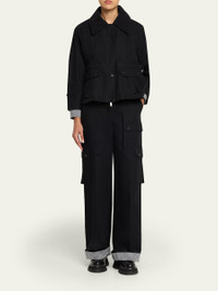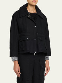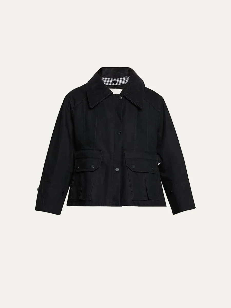 3.1 Phillip Lim jacket elevated with a corduroy collar Long sleeves Flap pockets Cropped fit Flounce hem Snap-front Cotton Partially lined Imported Online Inquiries: BGS21_T6Z1K| Store Inquiries: #5071343