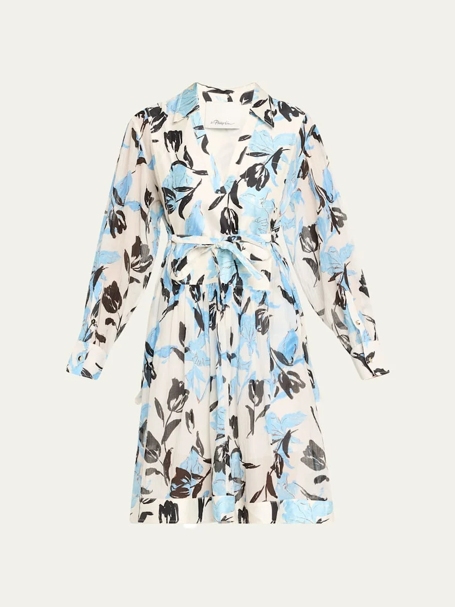 3.1 Phillip Lim shirt dress defined by a Joyful Tulips print Approx. 40"L from shoulder to hem Shirt collar V-neckline Long sleeves Buttoned cuffs Waist tie A-line silhouette Hem hits around the knee Cotton/silk Imported Online Inquiries: BGS21_T6RJW| Store Inquiries: #5026335