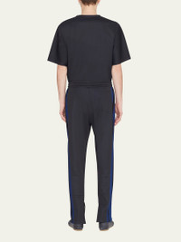 3.1 Phillip Lim jersey track pants with contrast pique side stripes Elasticized drawstring waist Side slip pockets Back patch pocket Full length Relaxed legs Zip cuffs Pullon style Polyester Unlined Imported