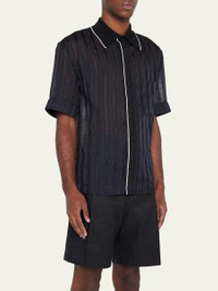 3.1 Phillip Lim mesh bowling shirt with tonal vertical stripes Spread collar; button placket Patch pocket Short sleeves Relaxed fit Polyester Imported