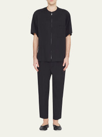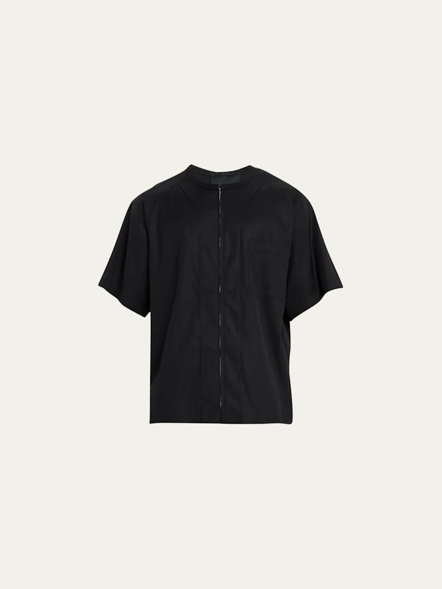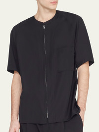 3.1 Phillip Lim solid baseball shirt Round neckline; two-way zip closure Patch pocket at chest Short sleeves Relaxed fit Viscose/lyocell Unlined Imported Model is 6'1"/185cm. Online Inquiries: BGS21_N984F| Store Inquiries: #4305229