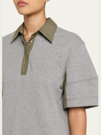 3.1 Phillip Lim mini polo dress finished with contrasting ripstop trim Point collar; snap-placket Short voluminous sleeves Shirtdress silhouette Hem falls above the knee Slipover style Cotton Unlined Imported Online Inquiries: BGS21_T6Z1T| Store Inquiries: #5071352
