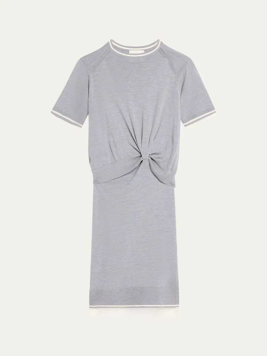 3.1 Phillip Lim wool midi dress embellished with sheer organza trim Crew neckline Short sleeves Draped bodice Hem hits around the knee Slipover style Wool Dry clean Imported Online Inquiries: BGS21_T6RJP| Store Inquiries: #5026327