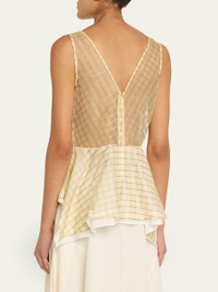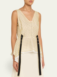 Crafted in plaid-printed organza, this 3.1 Phillip Lim piece features a layered flounce hem with contrast ribbon details that cascade down the figure. V neckline Sleeveless Classic fit Hem falls to the hip Center back zip Cotton/silk Dry clean Imported Online Inquiries: BGS21_T6RKA| Store Inquiries: #5026349