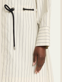Patterned with vertical and horizontal stripes, this shirtdress by 3.1 Phillip Lim is accented with a contrasting rope belt Spread collar; concealed button front Long sleeves; button cuffs Chest flap pockets Yoked back Hem falls above the knee Cotton/polyester Imported
