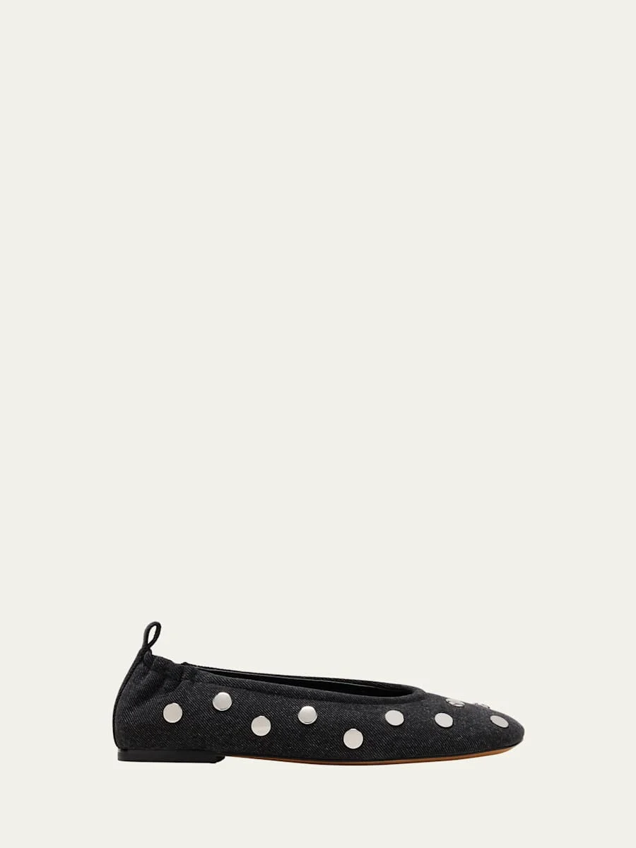 3.1 Phillip Lim studded denim cotton ballerina flats Round toe Slipon style Pull tab at back collar Leather outsole Lining: Leather Imported