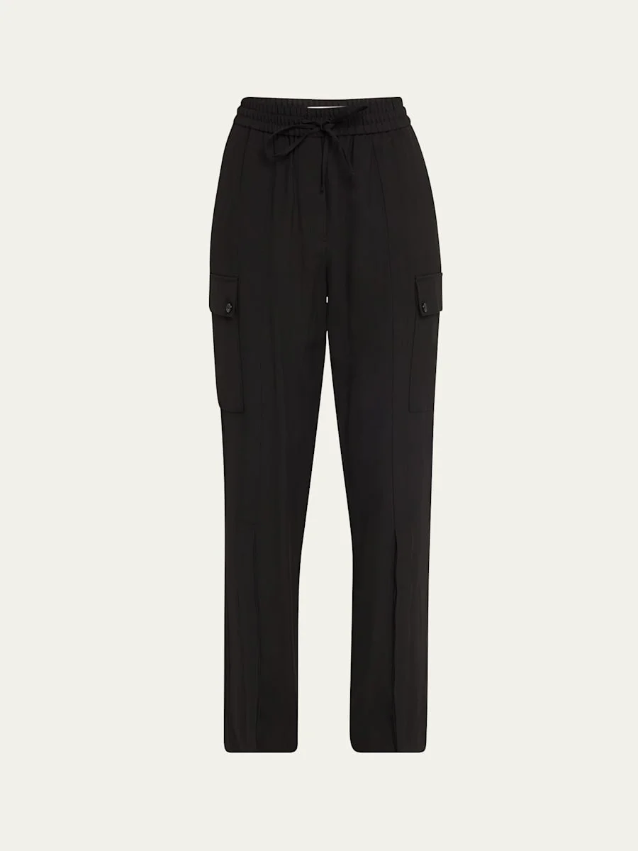 3.1 Phillip Lim pants crafted from a wool blend for luxurious movement and drape Approx. 14.5" rise; 33" inseam; 46.5" outseam High rise Side on-seam pockets Cargo pockets Buttoned back welt pockets Tapered fit Full length Elasticized drawstring waistband Pull-on style Wool/viscose Imported Online Inquiries: BGS21_T6RJY| Store Inquiries: #5026337