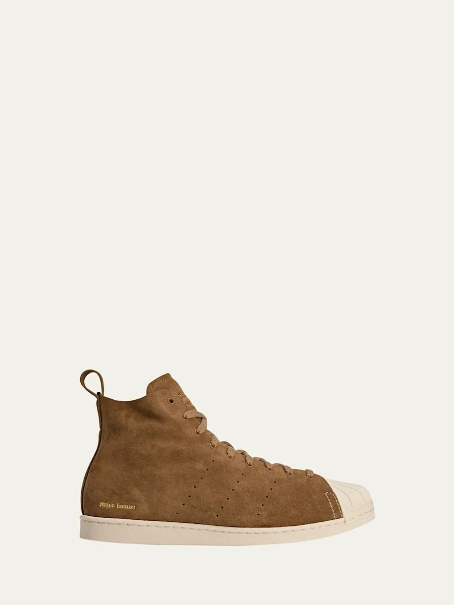adidas x Wales Bonner "Superstar" suede hightop sneakers with metallic embossed logo Flat heel Round cap toe Laceup vamp Pulltab at backstay Rubber outsole Lining: Unlined Spot clean Imported