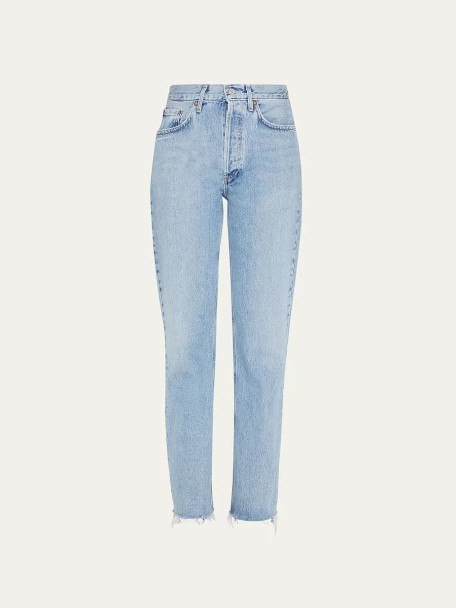 AGOLDE "Lana" vintage-inspired straight-leg jeans with a raw hem in light wash denim Five-pocket style Mid-rise Relaxed fit Cropped at the ankle Button/zip fly; belt loops Cotton Machine wash cold Imported Model is 5'10"/177cm. Online Inquiries: BGS21_T42VX| Store Inquiries: #4415158