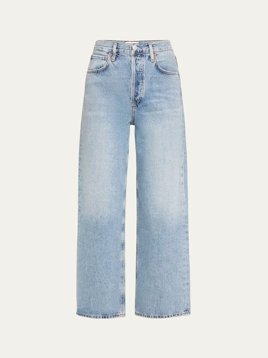 AGOLDE "Ren" wideleg jeans in lightwash denim High rise Fivepocket style Loose fit Cropped length Button/zip fly; belt loops Cotton Imported