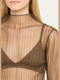 Aisling Camps "Modern Mist" plisse rib-knit structured top Turtleneck Long sleeves Relaxed fit Slip-on closure Nylon/polyamide/viscose Unlined Made in Italy Model is 5'10"/177cm. Online Inquiries: BGS21_B9F2Y| Store Inquiries: #4858736