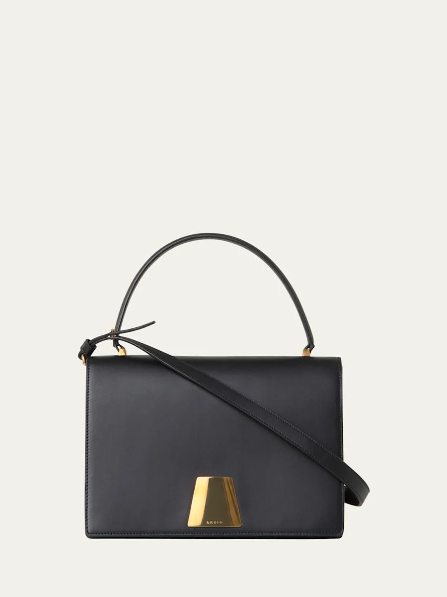 Akris "Alice" crossbody bag in leather Top handle Detachable, adjustable crossbody strap Can be worn as a top handle or crossbody bag Flap top with magnetic closure Divided compartment interior; one zip pocket Approx. 5.1"H x 7.2"W x 4.8"D Spot clean Made in Romania Online Inquiries: BGS21_V6ELF| Store Inquiries: #4945328
