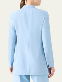 Akris "Alvar" blazer jacket tailored in a wool-blend featuring front slits along the hem Open front Long sleeves; slit cuffs Padded shoulders Hip flap pockets Straight fit Hem falls below the hip Wool/nylon/polyamide Made in Switzerland Online Inquiries: BGS21_BATAA| Store Inquiries: #5265506