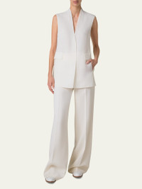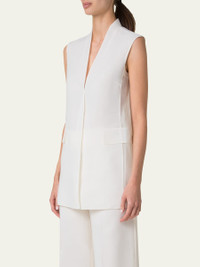 Akris "Artina" Panama silk organza vest V neckline; button front Sleeveless Side slip pockets; flap pockets Straight fit Back walking slit Long length Silk Made in Romania Online Inquiries: BGS21_B9JZ7| Store Inquiries: #4888065