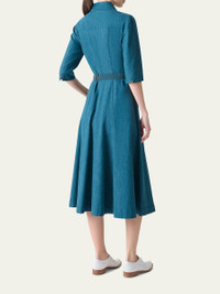 Belted Cotton Denim Stretch Midi Dress