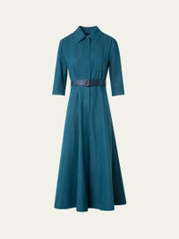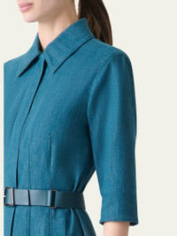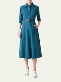 Akris cotton denim stretch dress complemented by a sporty belt Spread collar; hidden button placket Elbow-length sleeves Hem falls below the knee A-line silhouette Slipover style Cotton/polyurethane Lining: Elastane/viscose Dry clean Made in Romania Online Inquiries: BGS21_B9UGG| Store Inquiries: #4970820