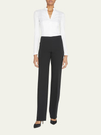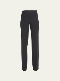 Akris "Carol" wool-blend pants Approx. 37" inseam High-rise waist Flat front Straight legs Hidden side zip Wool/nylon; unlined Dry clean Made in Romania Model is 5'10"/177cm. Online Inquiries: BGS21_B8MAL| Store Inquiries: #159575