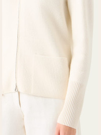 Akris pique knit cardigan sweater framed by ribbed cuffs Stand collar; zip front closure Long sleeves Two front patch pockets Hip length Relaxed fit Cashmere Made in Romania Online Inquiries: BGS21_BAJHL| Store Inquiries: #5166873