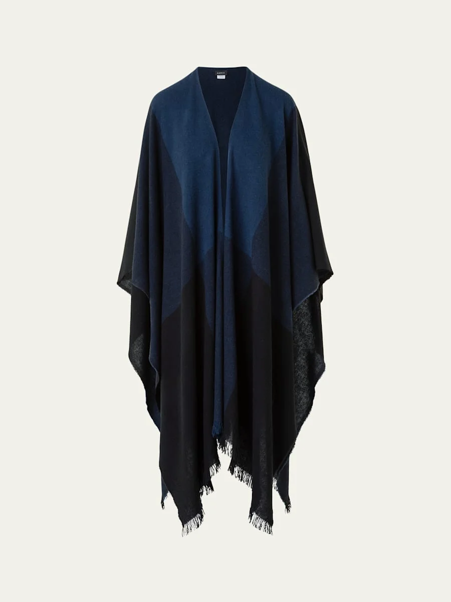 Akris cape scarf with a check intarsia and fringed edges Open front May be styled multiple ways Wool/cashmere Dry clean Made in Romania Online Inquiries: BGS21_D58ZH| Store Inquiries: #5019827