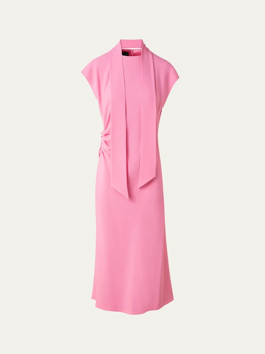 Crepe Mock-Neck Midi Dress