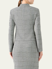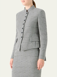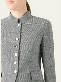 Akris "Deva" jacket is crafted of a wool stretch doubleface with Prince of Wales check motif Mandarin collar; singlebreasted front Long sleeves Padded shoulders Slit cuffs Hip flap pockets Slim fit Virgin wool/elastane Lining: Cupro Dry clean Made in Romania