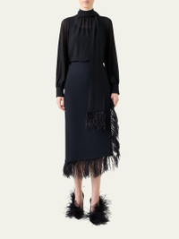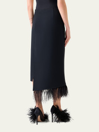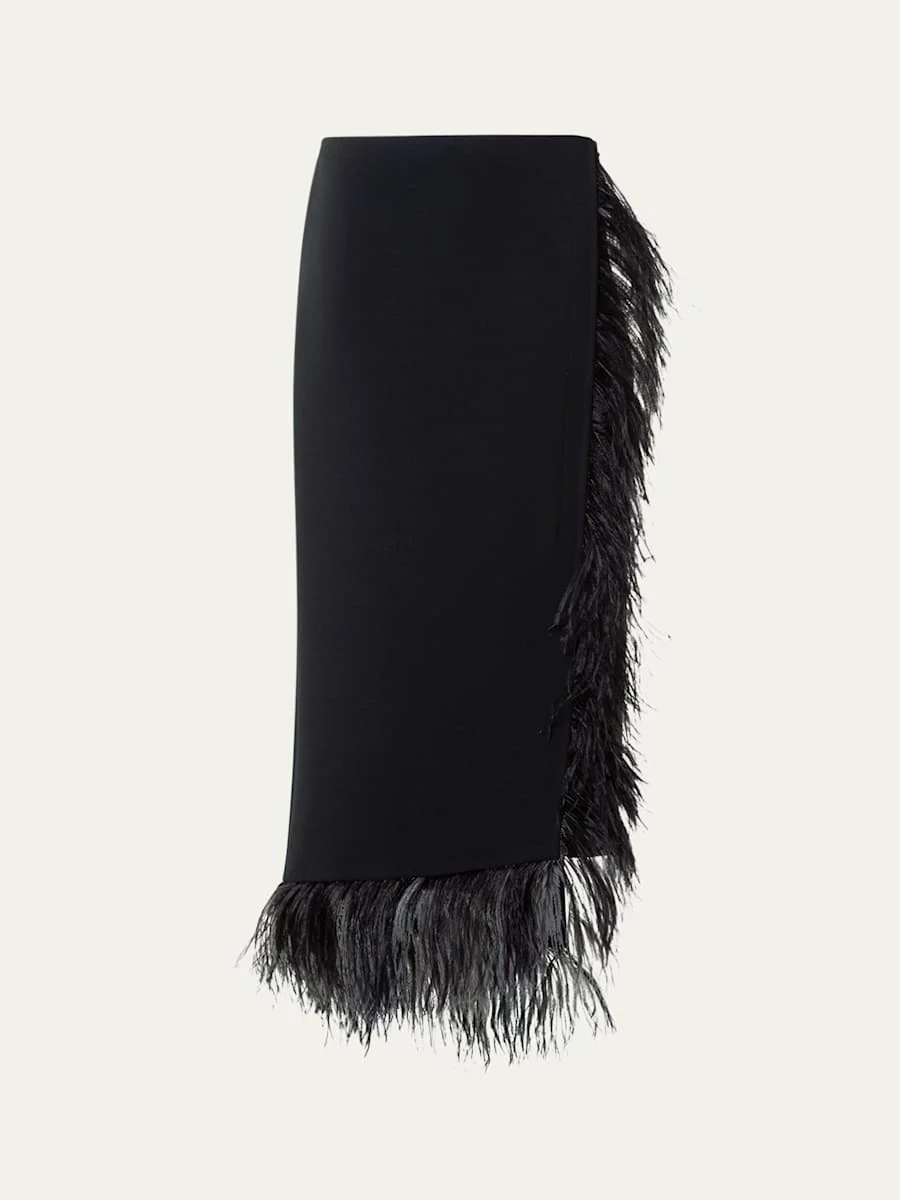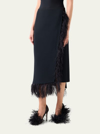 Feather-Trim Wool Stretch Double Face Midi Wrap Skirt