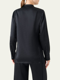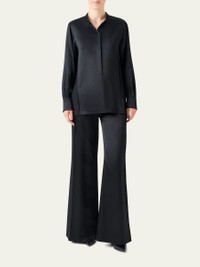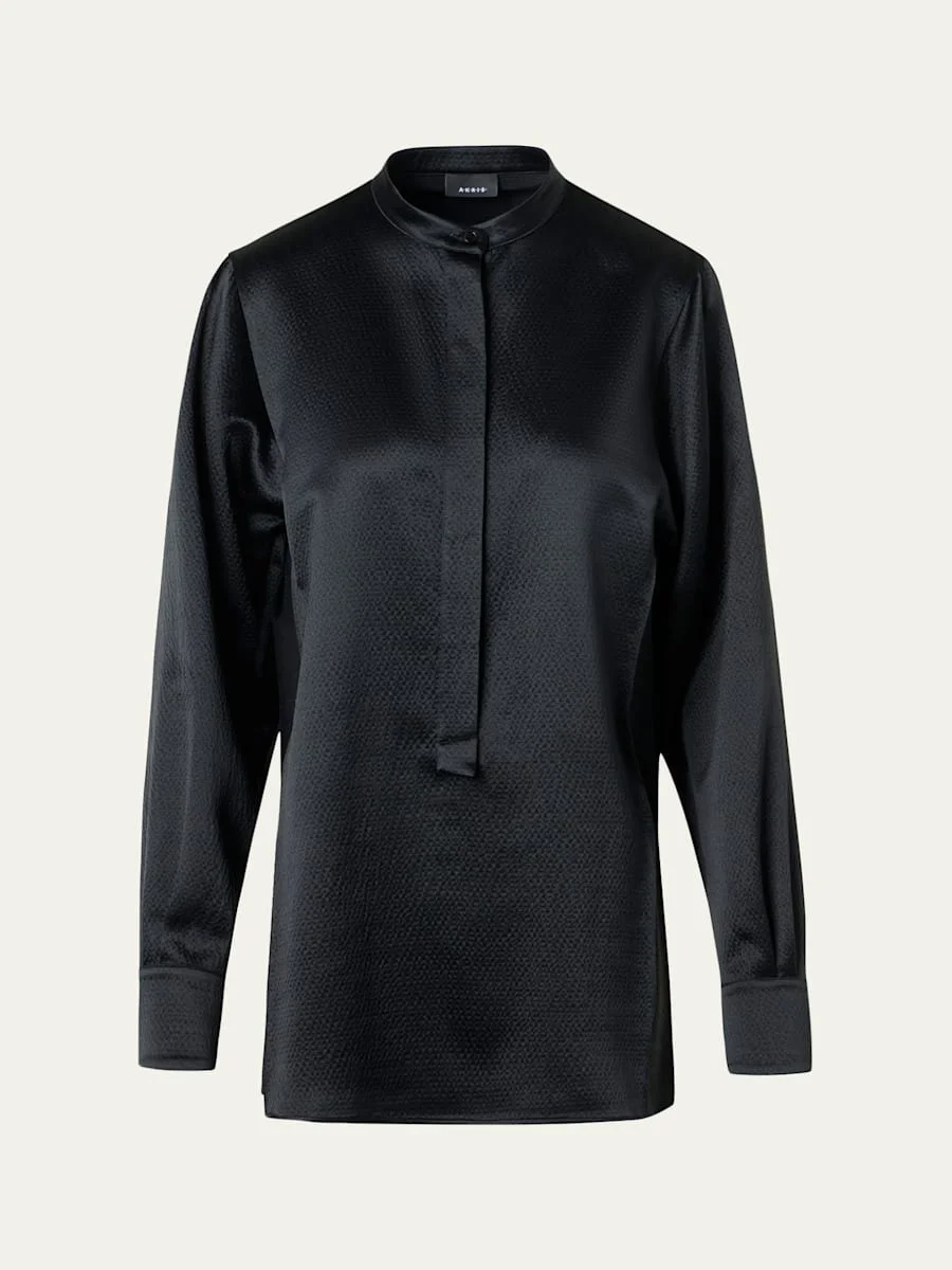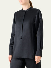 Akris shirt is crafted of a hammered silk-blend with reverse side panels Band collar; concealed half-button front Long sleeves; button cuffs Relaxed fit Pullover style Wool/silk Made in Romania Online Inquiries: BGS21_BATBT| Store Inquiries: #5266145