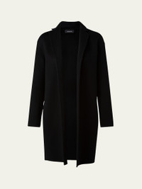 Akris "Mae" coat in brushed cashmere Notch lapels; open front Long sleeves Side split pockets Straight fit Hem falls below the hip Cashmere Made in Switzerland Online Inquiries: BGS21_B8U8K| Store Inquiries: #4650909
